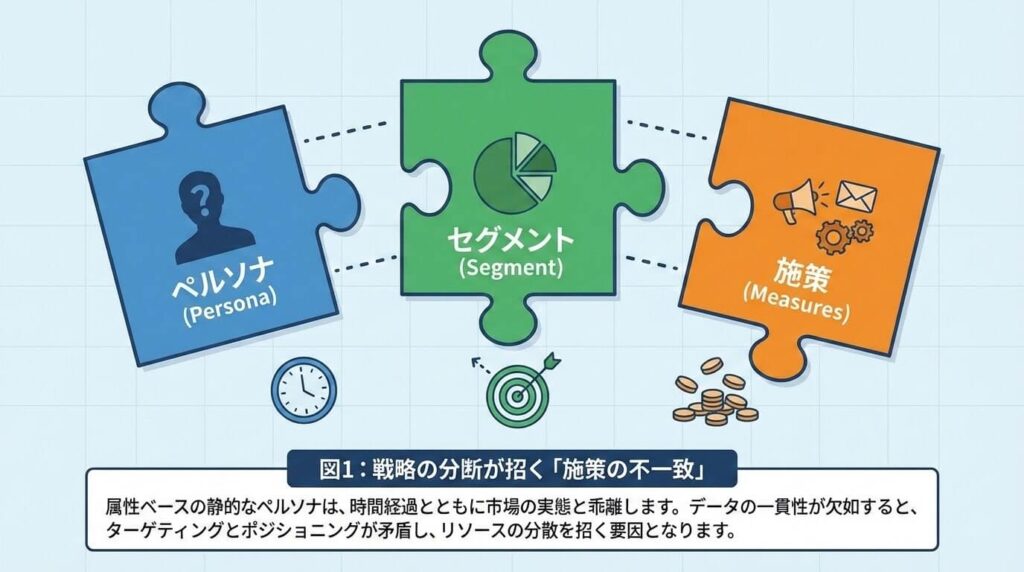 ペルソナを作ってはみたものの、結局使わないままになってしまうという悩みは、ペルソナという手法そのものの欠陥ではなく、その後の戦略工程との「分断」に原因があります。