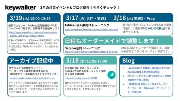 キーウォーカーの3月の注目イベント・ブログの紹介