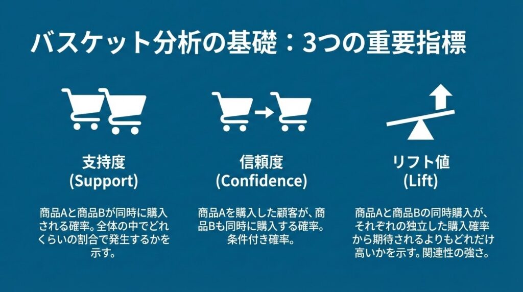 2. バスケット分析の基礎:3つの重要指標