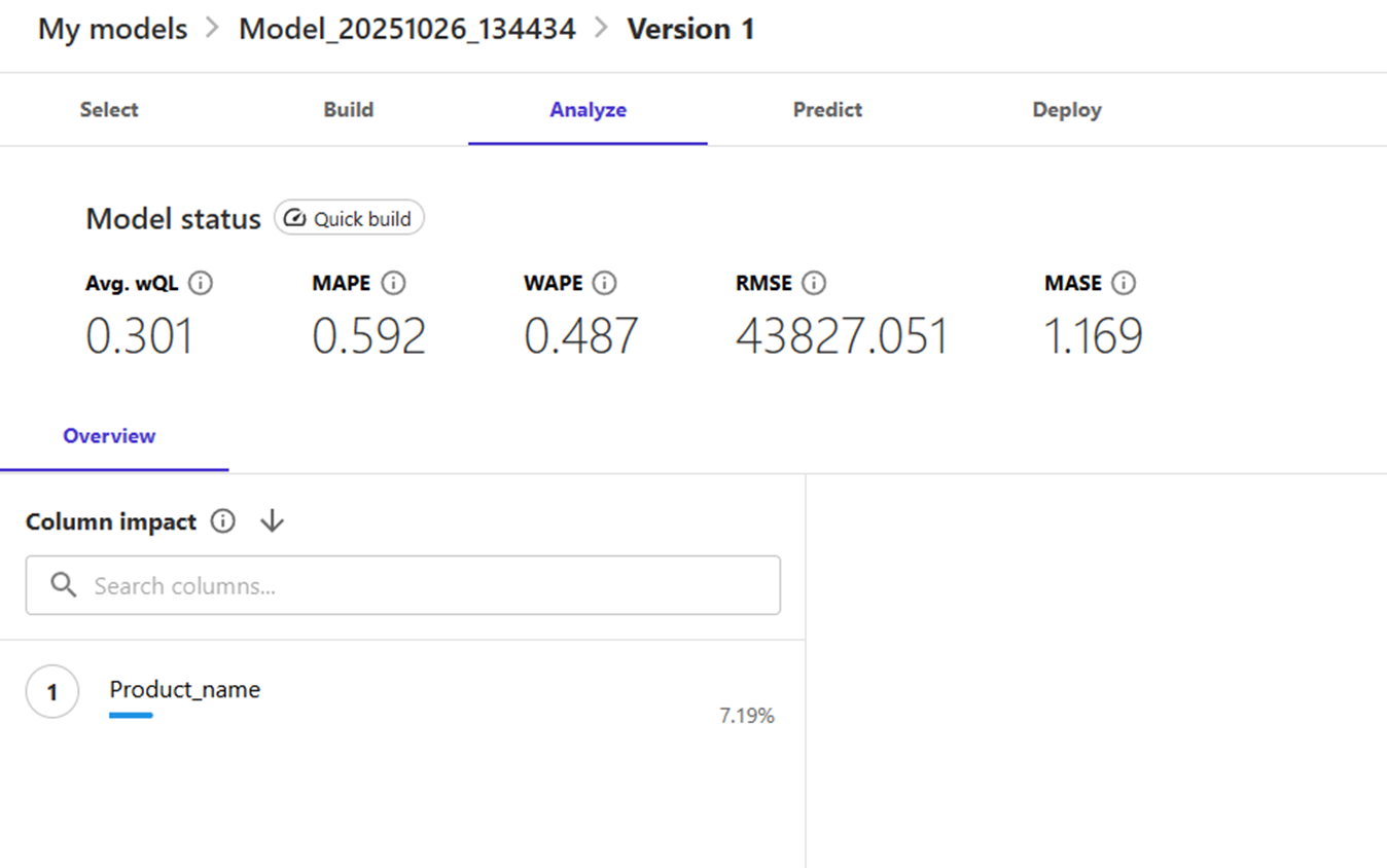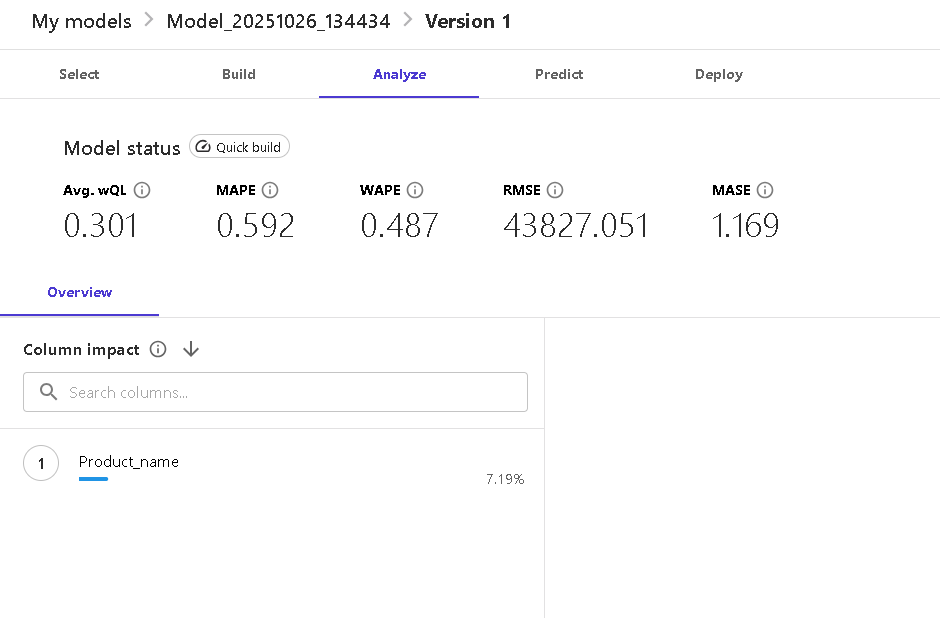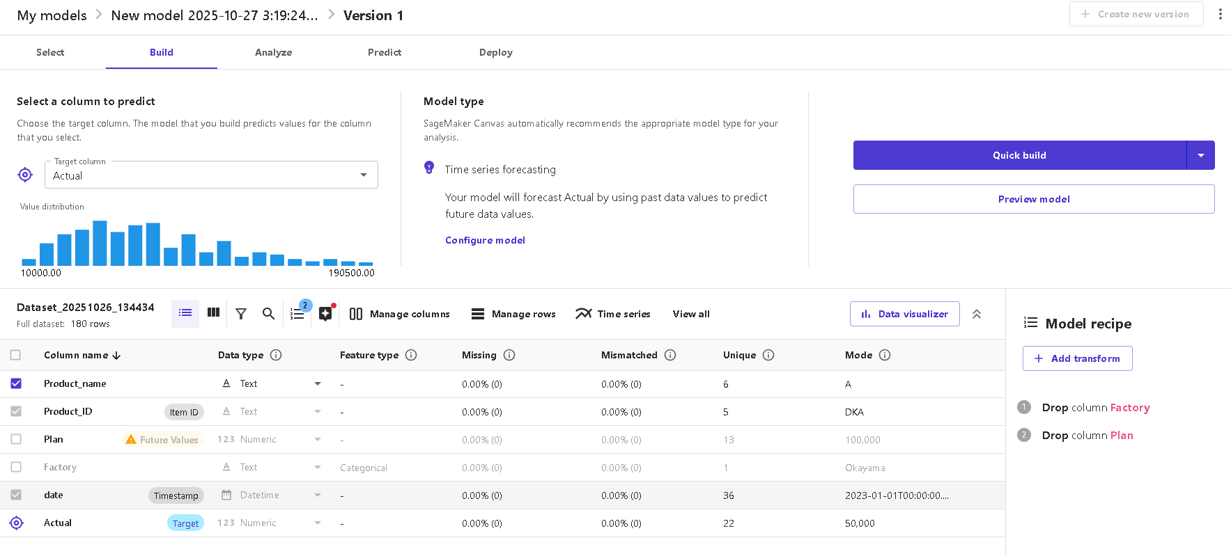 ここまで設定できたので、右上の「Quick build」からモデルの構築を進めました。
