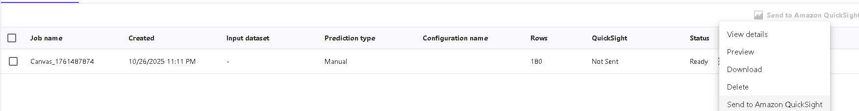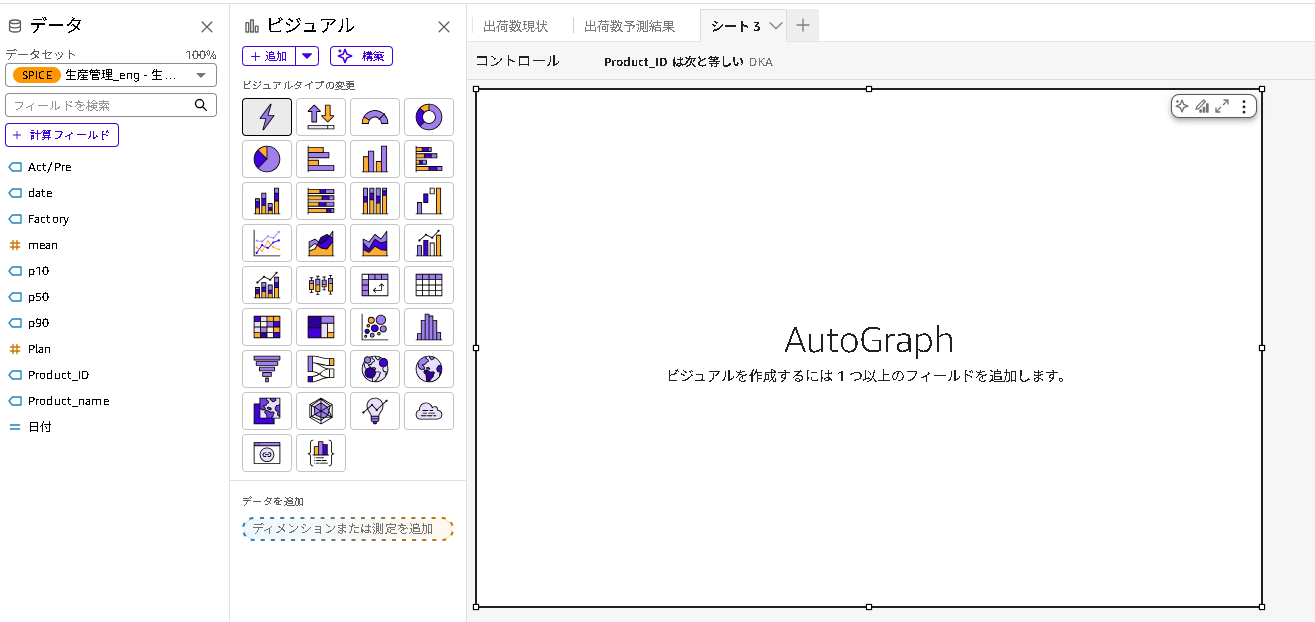 AWSのサービスにQuickSightというデータの可視化サービスがあり、今回出力された予測値をそのままQuickSightにデータを転送することができます。