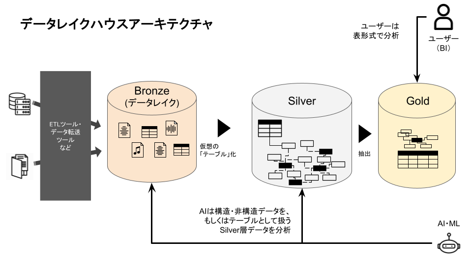 「データレイクハウス」の一般的な構造