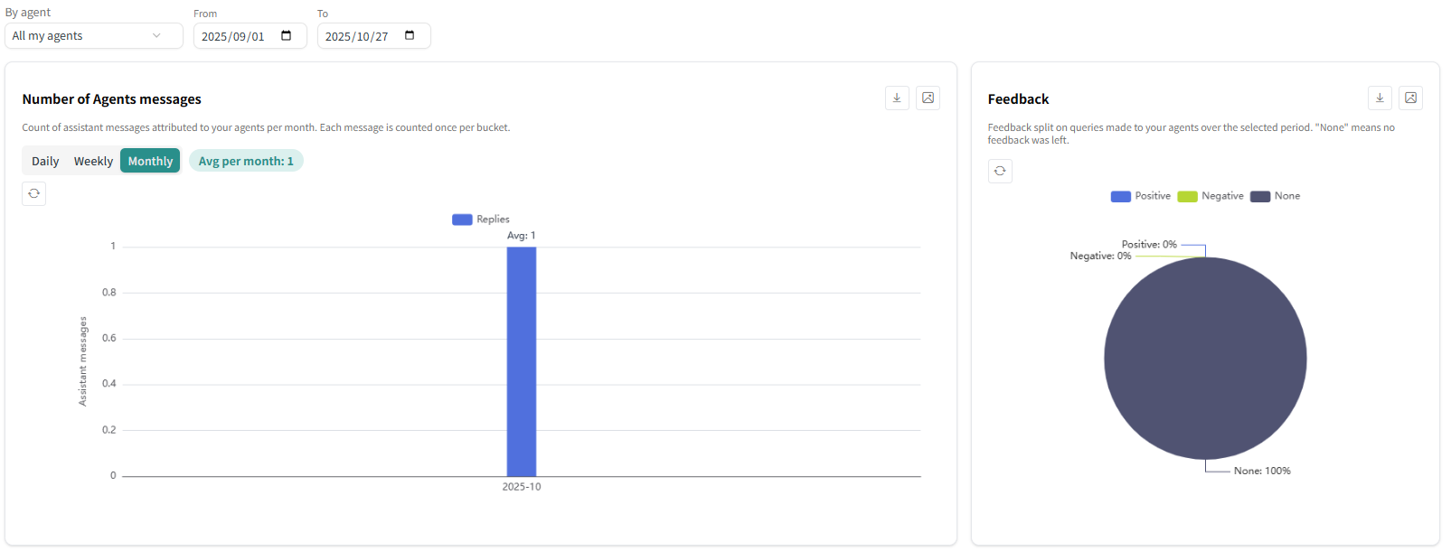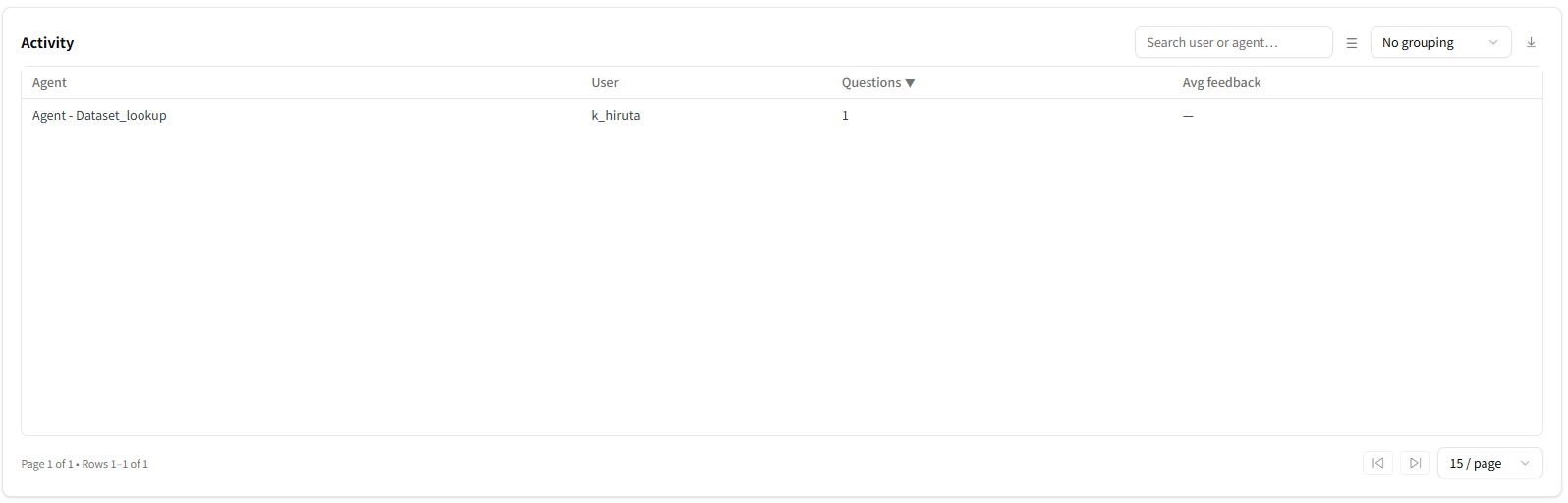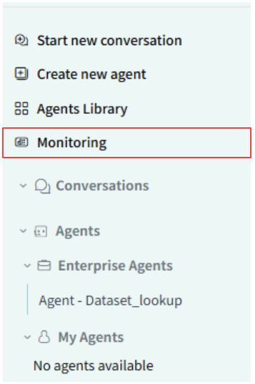 Agent Hub上でのユーザーの利用状況はMonitoringから確認することができます。