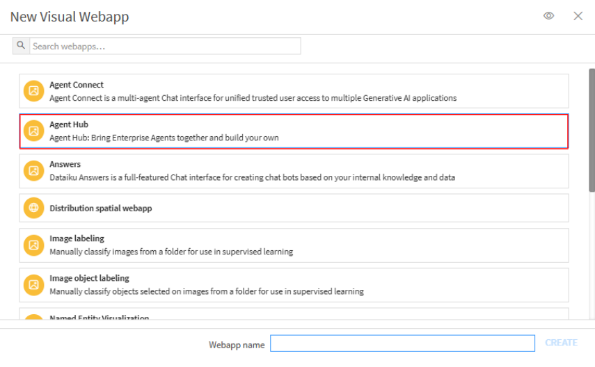 NEW WEBAPPからVisual Webappを選択します。選択したら、Agnet Hubを選択し、作成に移ります。