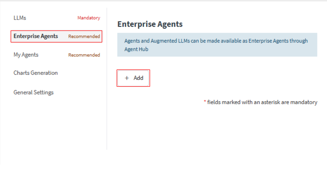 Enterprise Agentsで+Addから設定をします。