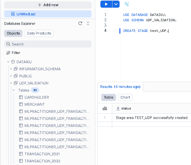 最初に、UDFを格納するためのステージをSnowflake上に作成します。