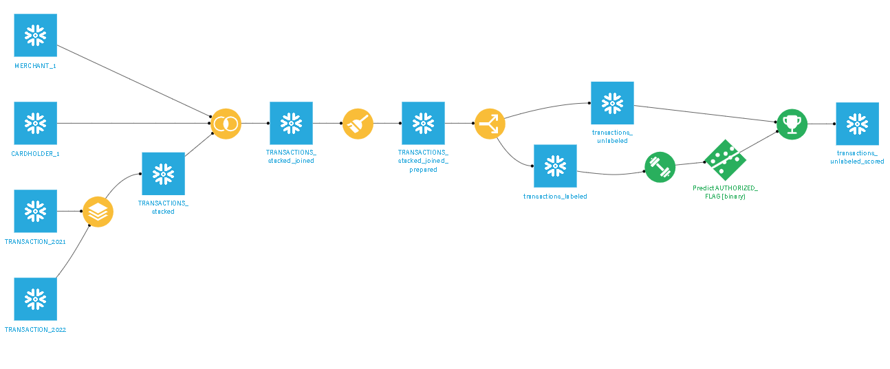 事前準備が完了しましたら、Dataiku上でフロー・モデルを構築します。構築したデータはSnowflakeのデータを使用しています。