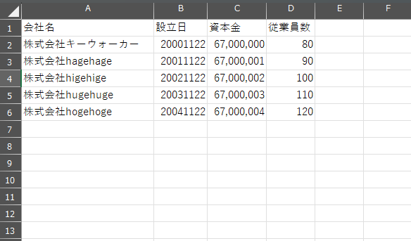 とあるお客様が「企業ごとの設立日・従業員数・資本金を調査し分析を行いたい」という目的で依頼をされたとします。