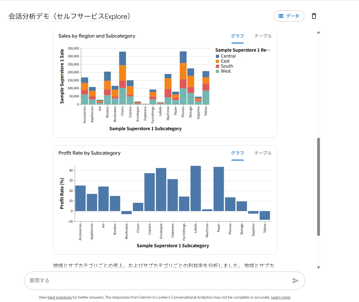 Lookerで本格的な可視化を行う前に、とりあえず可視化してみるといったPoCが実装できる面でも便利です。