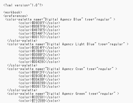 - カスタムカラーパレットを使用するには、XML形式のPreferenceファイル (.tps)を直接編集する必要があった。