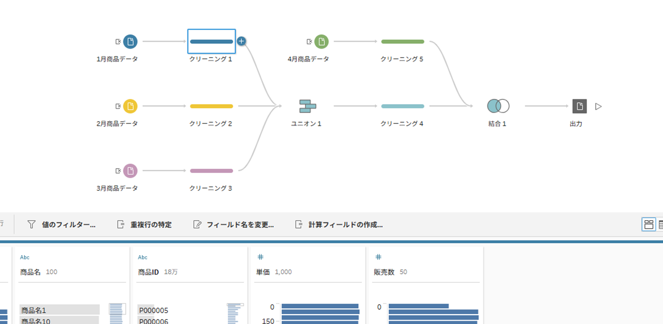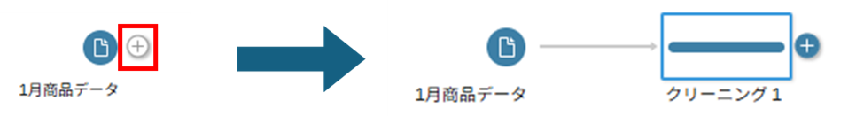 4.クリーニングステップの追加::+ボタンより、統合されたデータフローにクリーニングステップを追加してデータを整形します。