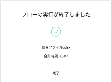 7.データ出力完了:以上でフローの実行が完了し、指定のフォルダに統合されたファイルが出力されます。