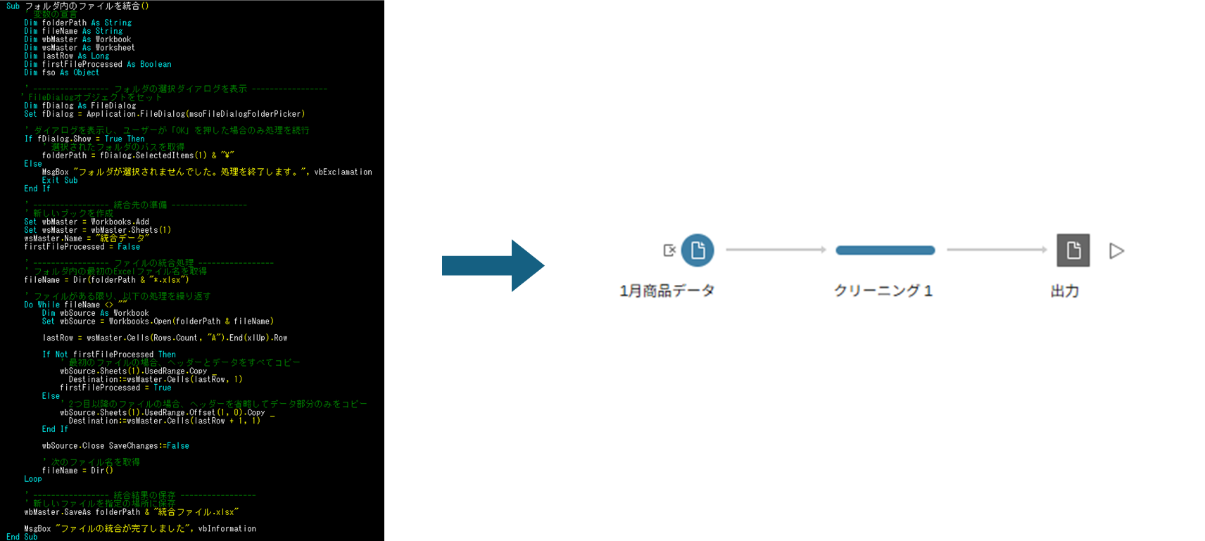 その結果、VBAで書いていたコードがTableau Prepではこんなにシンプルになりました。
