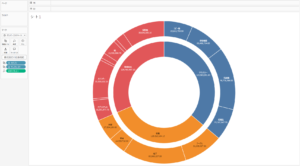 1.上記で作成したドーナツグラフに加えてディメンションをマークの「階層レベル」に追加するとサンバーストチャートが完成します。 ※階層レベルには最大で5つまでディメンションを追加できます。