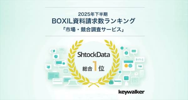 キーウォーカーのShtockData、「2025年下半期 BOXIL資料請求数ランキング」の 「市場・競合調査サービス」カテゴリで総合1位受賞