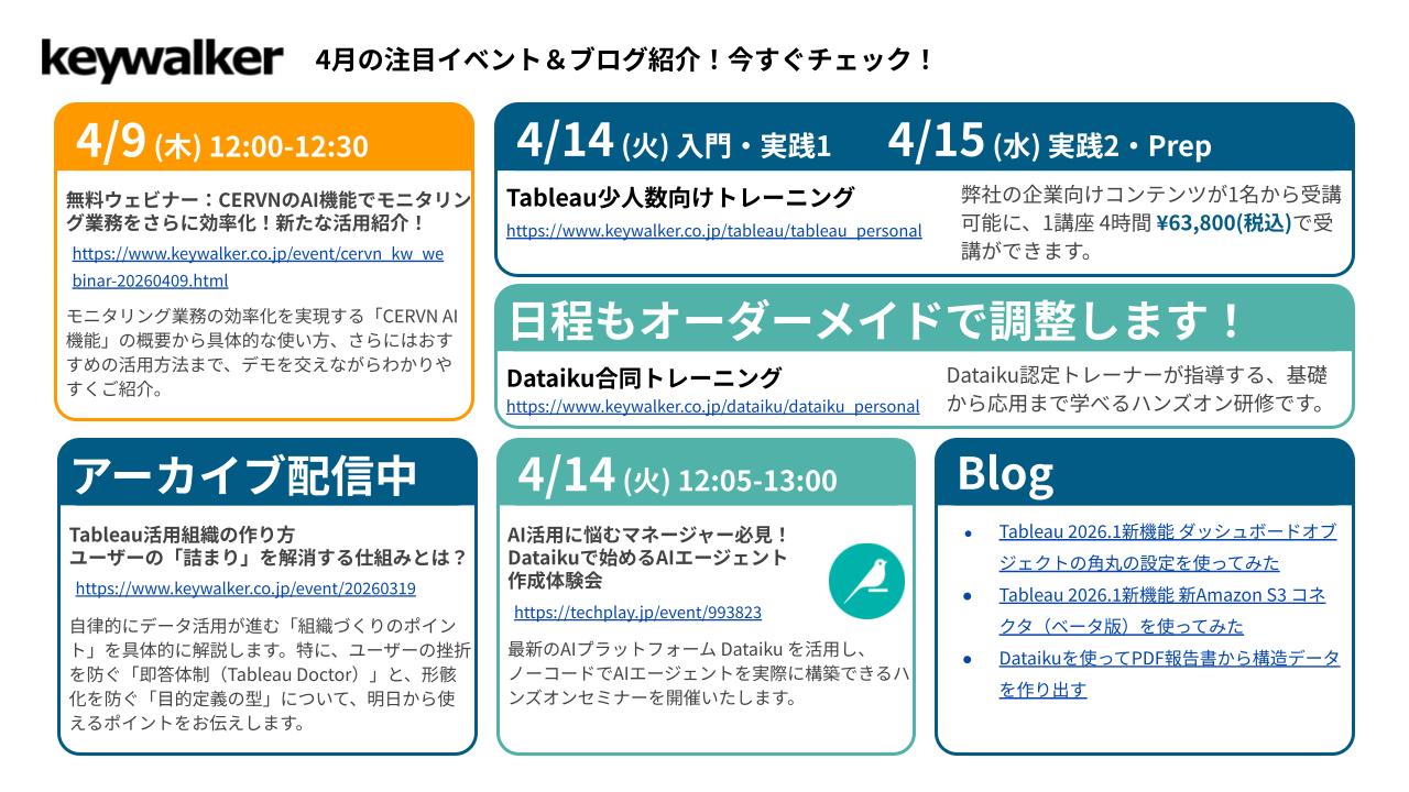 キーウォーカーの4月の注目イベント・ブログの紹介